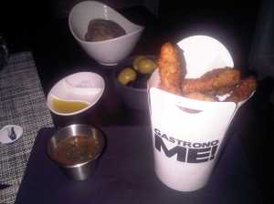 El logo del sitio me encantó y del nombre quería conocer cual era su historia, así que no me pude resistir y le pregunté al encargado qué significaba GastronoME! Todo viene de Gastronomía, cosa que le encanta a los 12 socios que llevaban el local (SÍ 12, no habéis leído mal,incomprensible), su idea era montar un local tradicional (de ahí que esté en el Barrio de Salamanca) pero informal (por eso optaron por un formato tapas), el resultado: un restaurante de los que denomino «WANNA BE» (quiero pero no puedo).