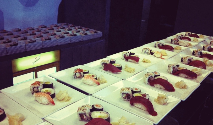 La zona VIP, estaba formada por una zona al aire libre, donde se tomaban copas y había puestos de zumos, helados, puros, tapas… y una zona de interior, donde se situaba el restaurante, que estaba formado por dos plantas de varias salas cada una. En cada sala había comida de una parte del mundo (española, japonesa, italiana, china, india, americana, inglesa, tailandesa, francesa…) nosotros fuimos probando de todo un poco.
