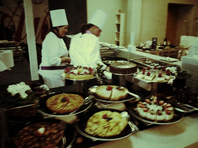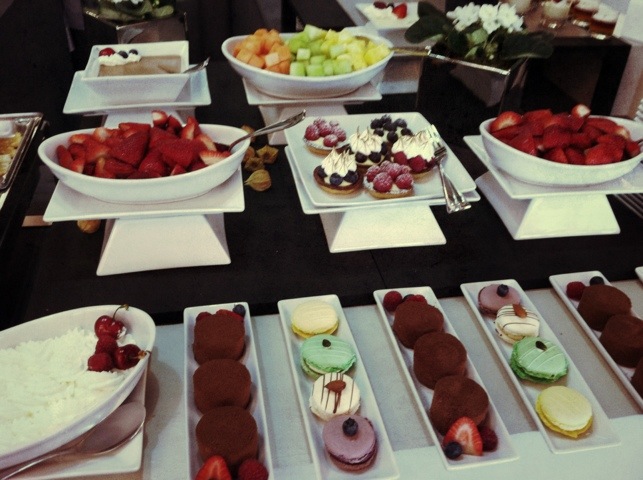 El broche de oro, lo pusieron los postres. Para los golosos, éste hubiera sido vuestro paraíso, había de todo: mini tartaletas de frutas del bosque, mousse de chocolate, macaron, bombas de chocolate y avellanas, fruta variada con nata o con chocolate, coulant de chocolate, crema catalana, tartas variadas, y crepes y gofres recién hecho.