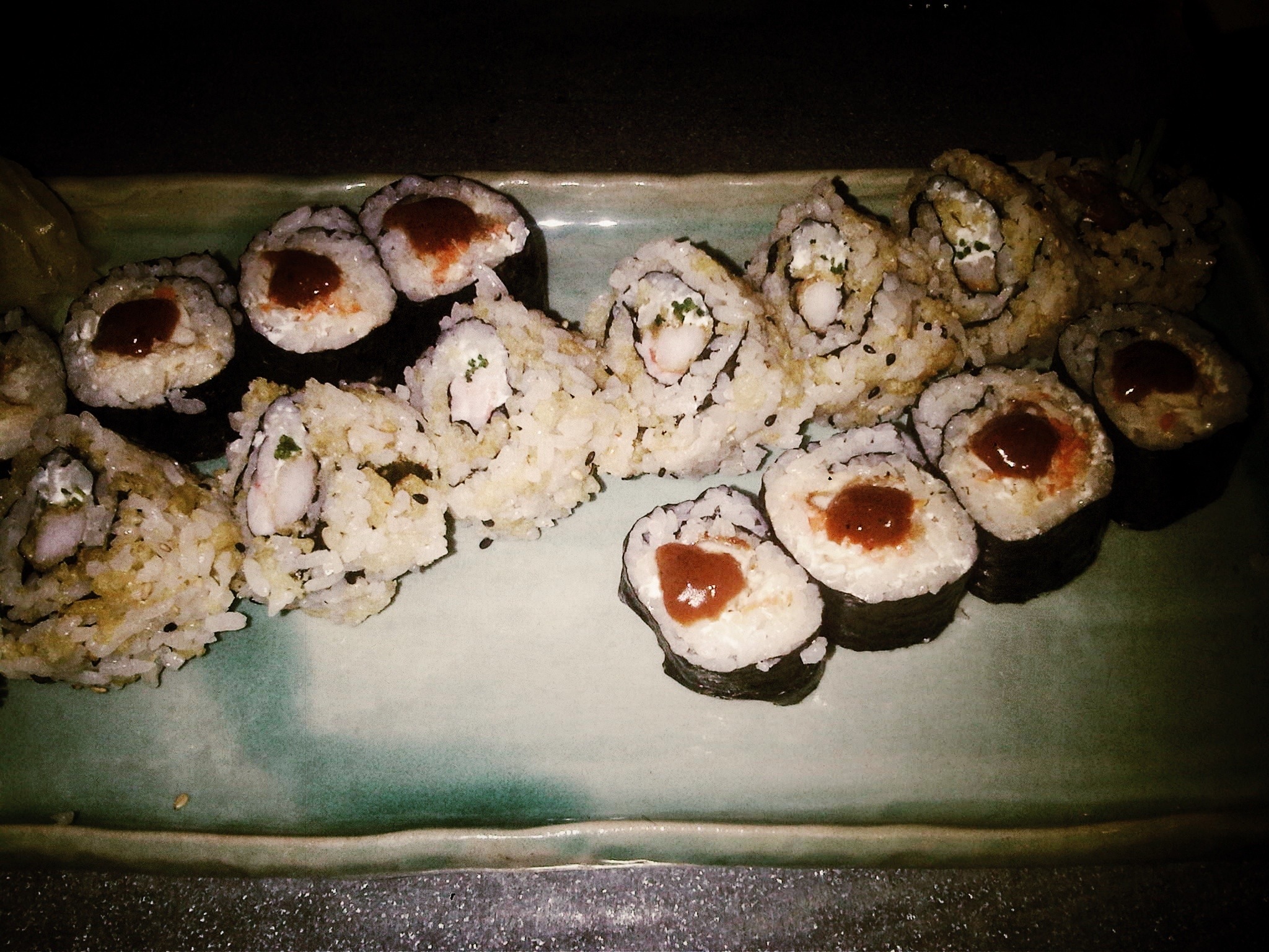 Fieles a nuestra idea de sólo cenar sushi, pedimos 5 maki rolls (40 piezas para 2 personas) para poder probar las incorporaciones que han hecho en su carta.
