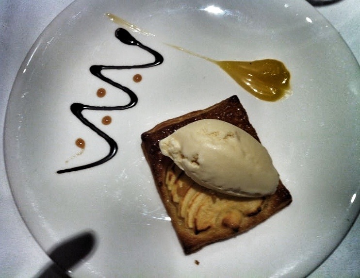 La fina tarta de manzana con helado de vainilla, es todo un clásico de la zona. La ponen en todos los restaurantes de la ciudad pero de formas muy diferentes, y yo siempre caigo en la tentación porque el hojaldre es mi base favorita para un buen postre. Este era muy bueno, pero escaso para mi gusto, soy partidaria de los hojaldres finos y muy alargados para lograr que se extienda todo el caramelo :).