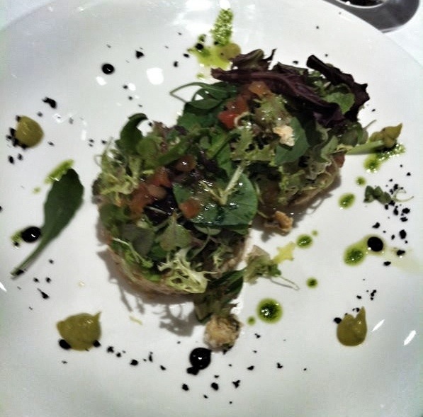 La ensalada de anchoas frescas con vinagreta de frutos secos, de la cual destacaré las maravillosas anchoas, que rodeaban a la ensalada, que seguramente habían sido pescadas esa misma mañana.