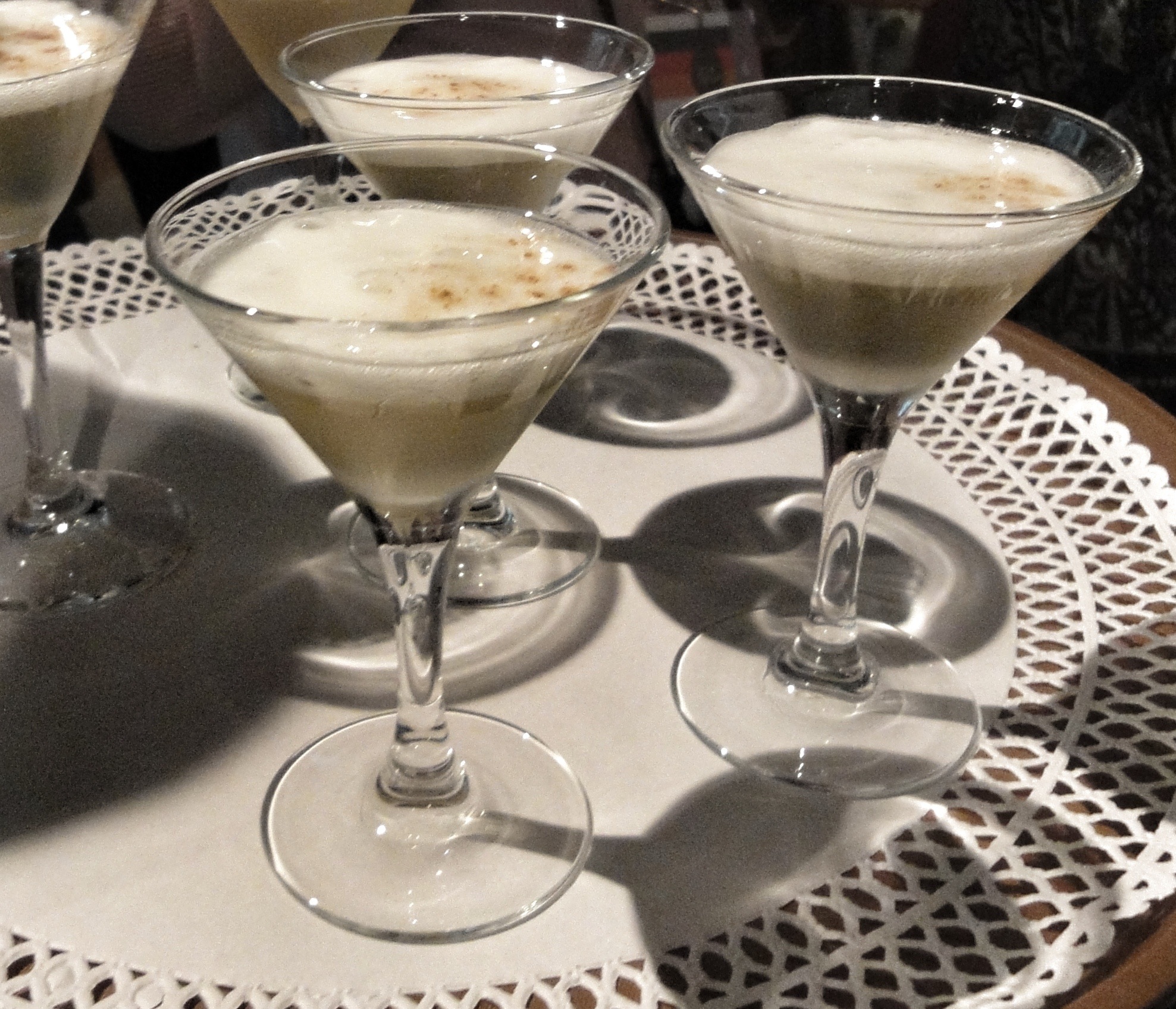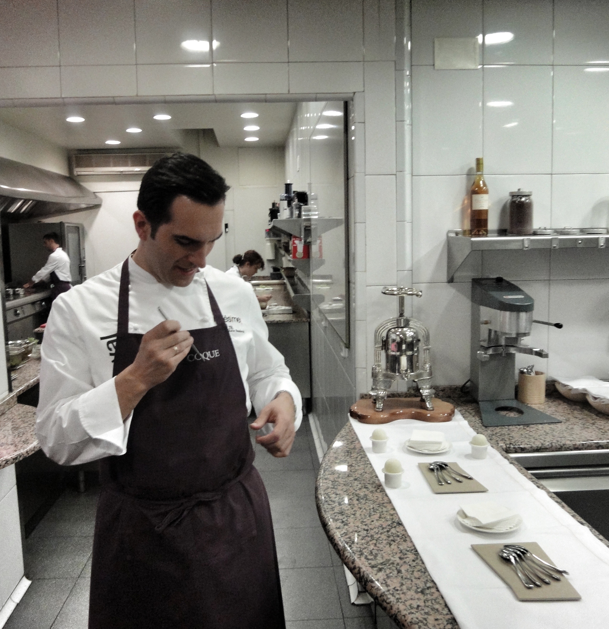Comenzamos, mientras se entregaban los premios, en la bodega de Coque con un Cóctel Brillant Savarin: cóctel frío de Martini y Drambuie con espuma caliente de limón.