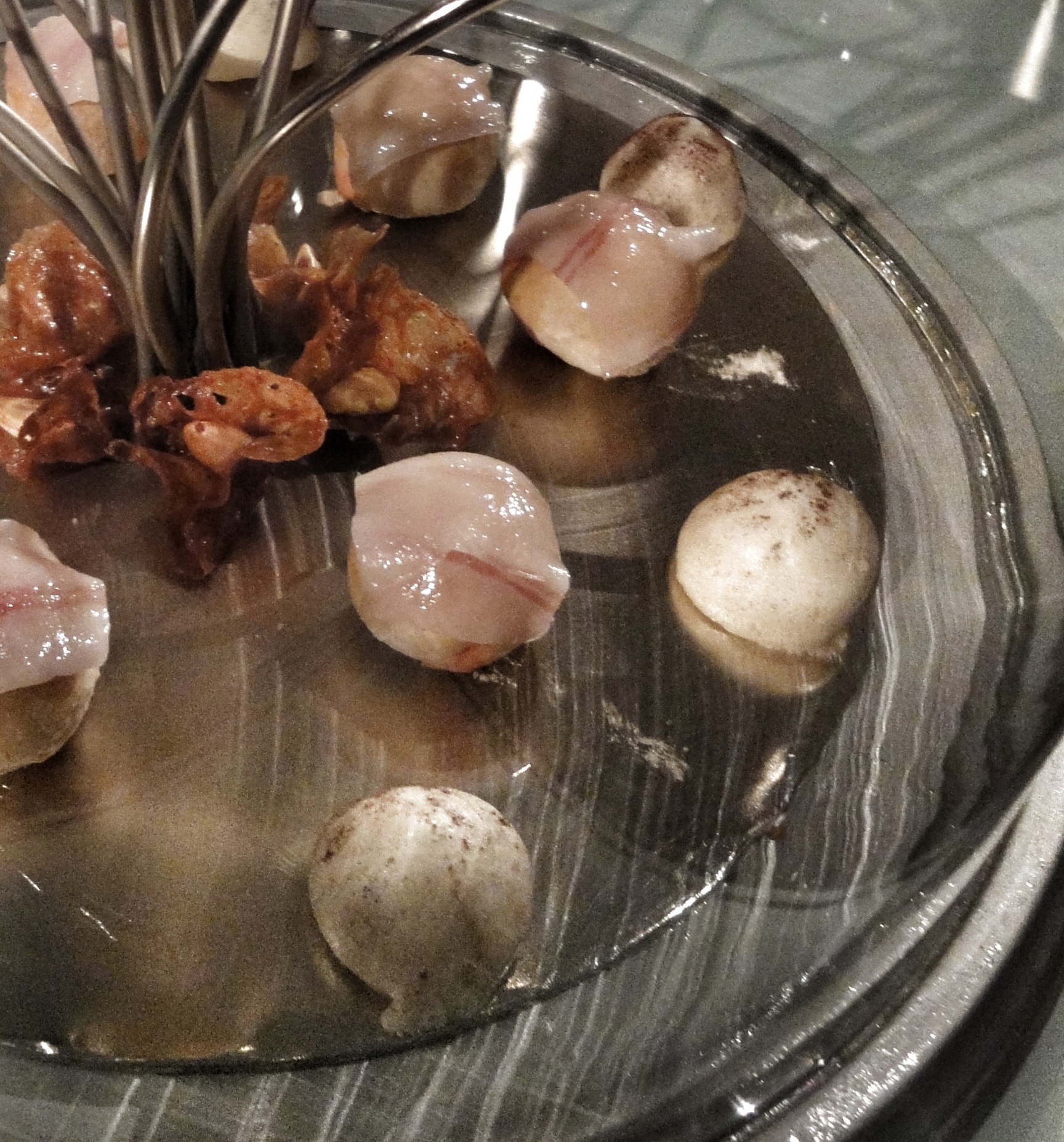 Buñuelo de trufa con trigo malteado: bolitas de champiñón y trufa cubiertos de un fino rebozado de trigo malteado.