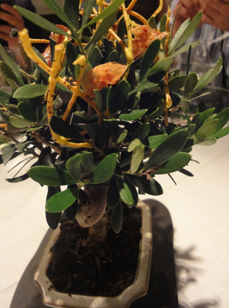 Una vez sentados, la sorpresa que nos dieron fue que nos podíamos comer las ramas de olivo con aceitunas que teníamos en frente,en medio de la mesa.