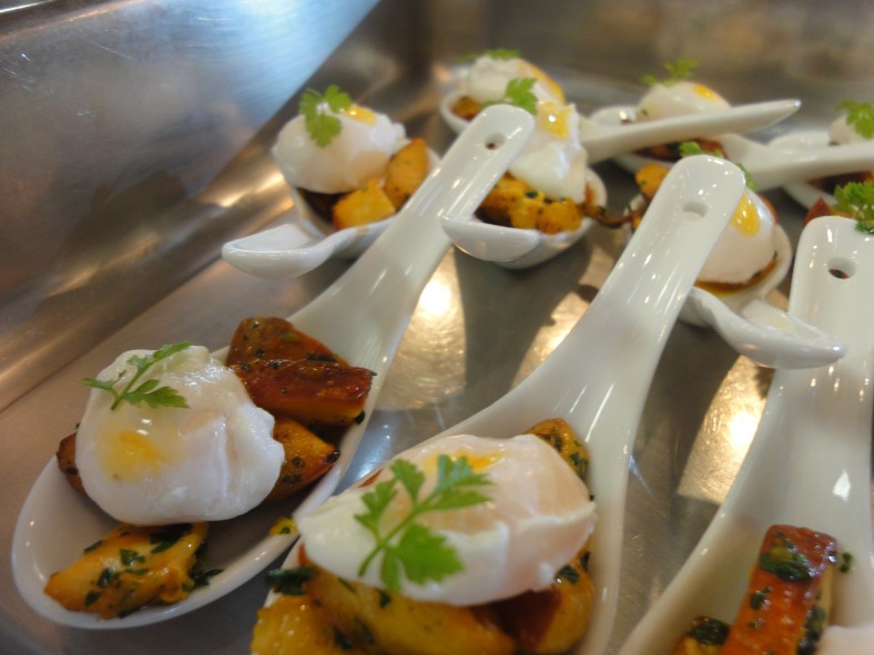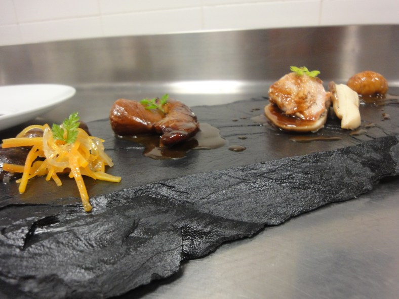 Los ingredientes que compraron fueron todos de temporada: castañas, setas de Gold Gourmet (boletus, níscalos, amanita cesarea…), calabacines, vieras y codornices (que aprendimos a desplumar, cortar y cocinar). Con ellos elaboramos un cucharitas de amanita cesarea con huevo (hecho a baja temperatura), rissoto de vieras y calabacín, un escabeche de níscalos, unos boletus confitados con pechugas de codorniz a la plancha, castañas caramelizadas y muslos de codorniz en su salsa.