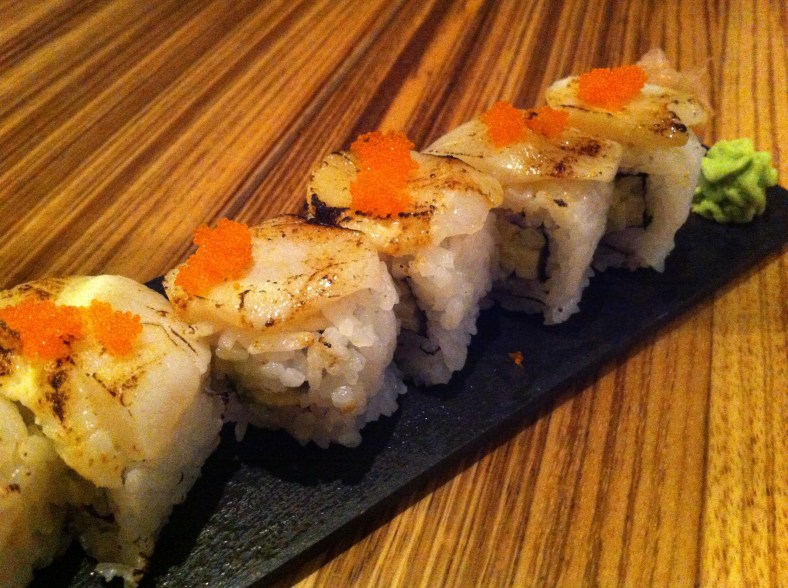 El maki de vieras flambeadas, estaba realmente bueno, aunque eché en falta un poco de queso crema y aguacate. Se notaba que el Sushiman era bueno, ya que el arroz estaba en su punto, el tamaño era el correcto y el corte del pescado era profesional.