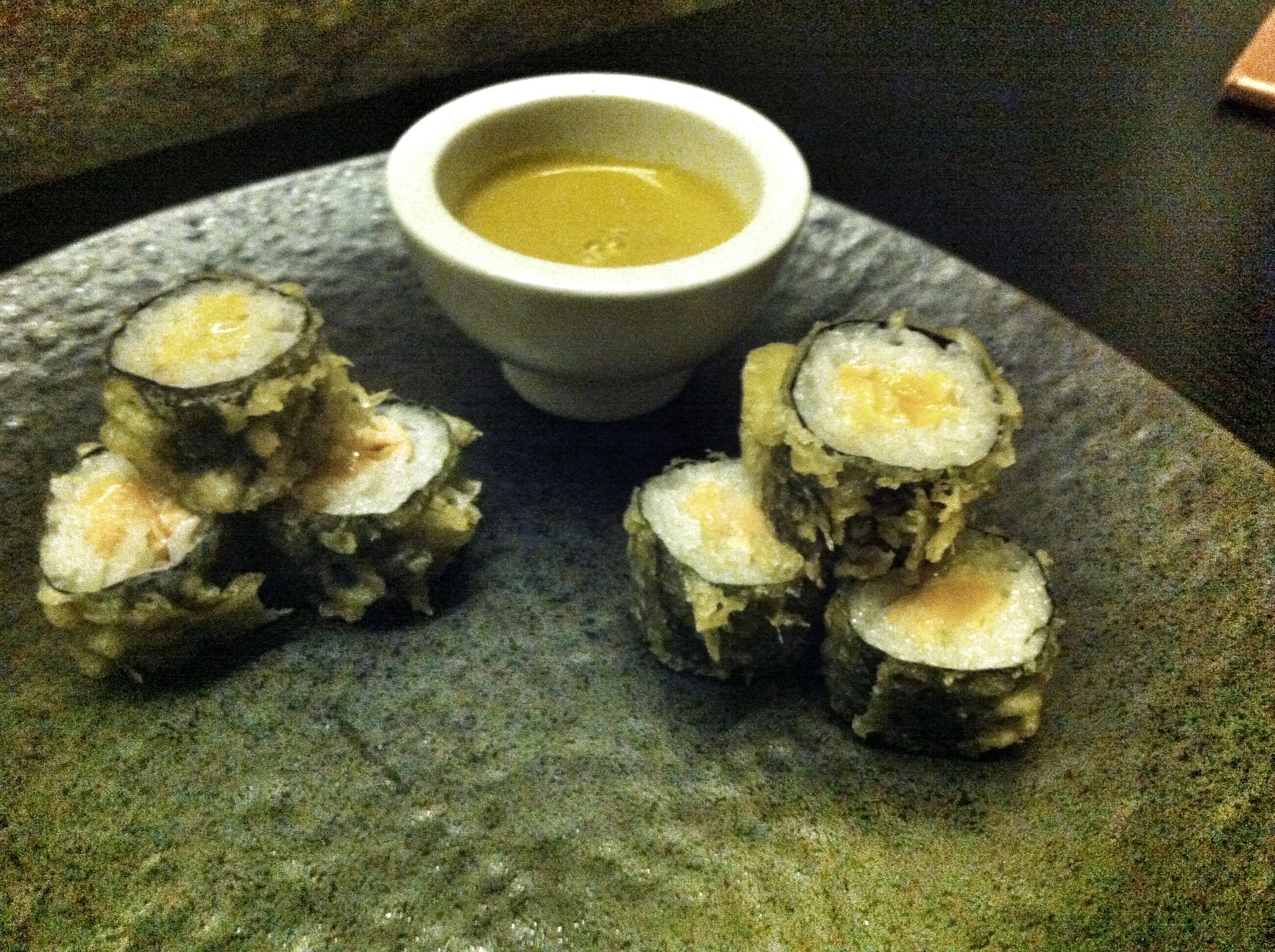 Los siguientes en llegar fueron los toro spicy roll, rellenos del tesoro del Mediterráneo (ventresca de atún) con salsa picante, que se han situado en el TOP 3 del ránking de makis de Madrid. Me pareció exquisito el toro flambeado y la salsa es todo un acierto, porque te da un sabor muy diferente al que te daría la salsa de soja.
