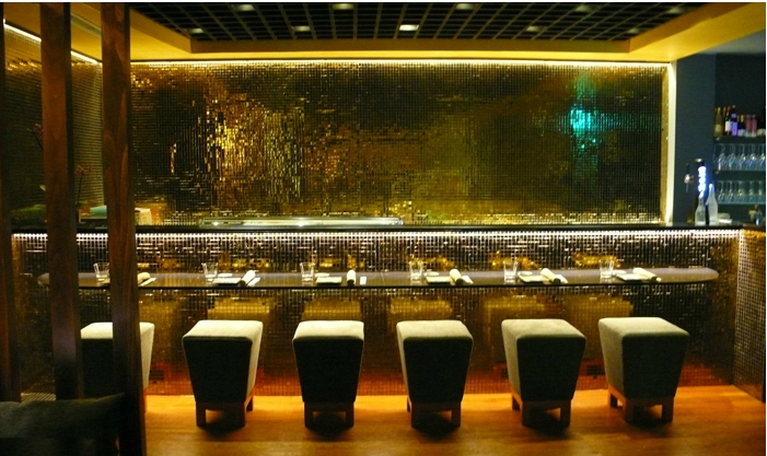 Cuando bajas las escaleras y ves el local, que ha decorado la famosa interiorista Aurora Gamez, lo que más llama la atención es la barra de sushi al final de la sala y los reservados en los lados ;).