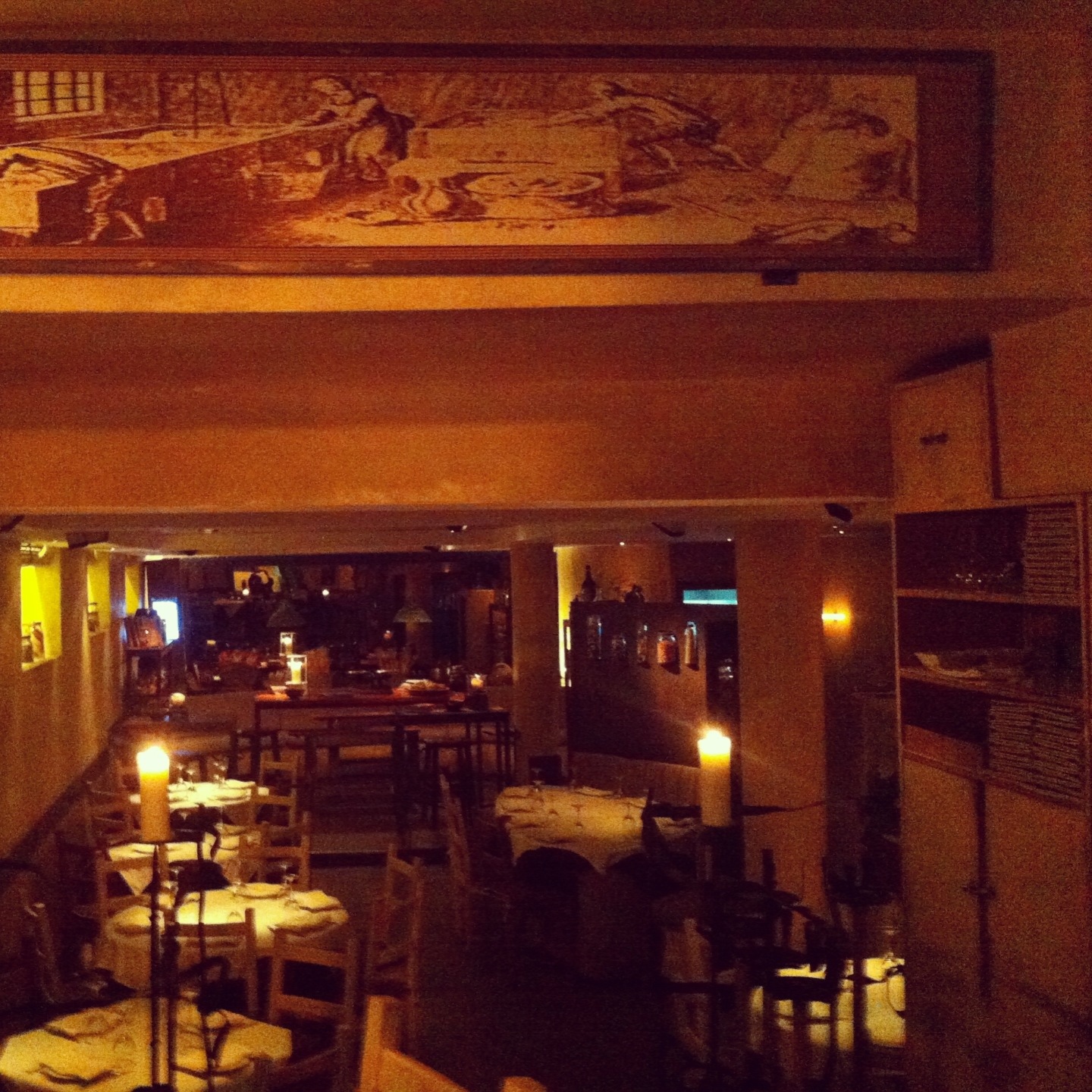 Al entrar llama la atención la forma de «L» que tiene el restaurante, con una primera zona que da a un gran ventanal, desde donde puedes ver un Madrid con mucho encanto y en la zona interior han creado un ambiente romántico y muy acogedor con luz de velas y música italiana de fondo :).