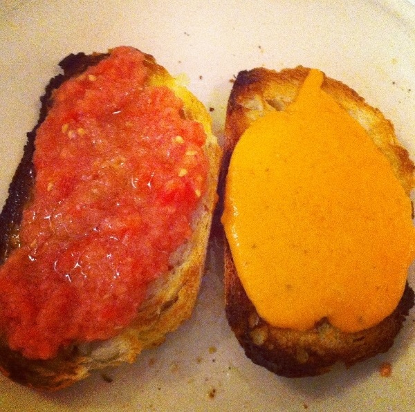 20130514-205626.jpg Publicado 14 de mayo de 2013 en 600 × 596 en El kiosco del pan ← Anterior Siguiente → Una tostada con tomate triturado y otra con salmorejo
