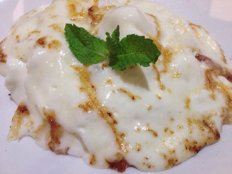 De postre tomamos una Espuma de crema catalana con espeso de chocolate caliente y pudin de naranja, que repetimos de lo buena que estaba y de las peleas que había para poder coger una cucharada :).