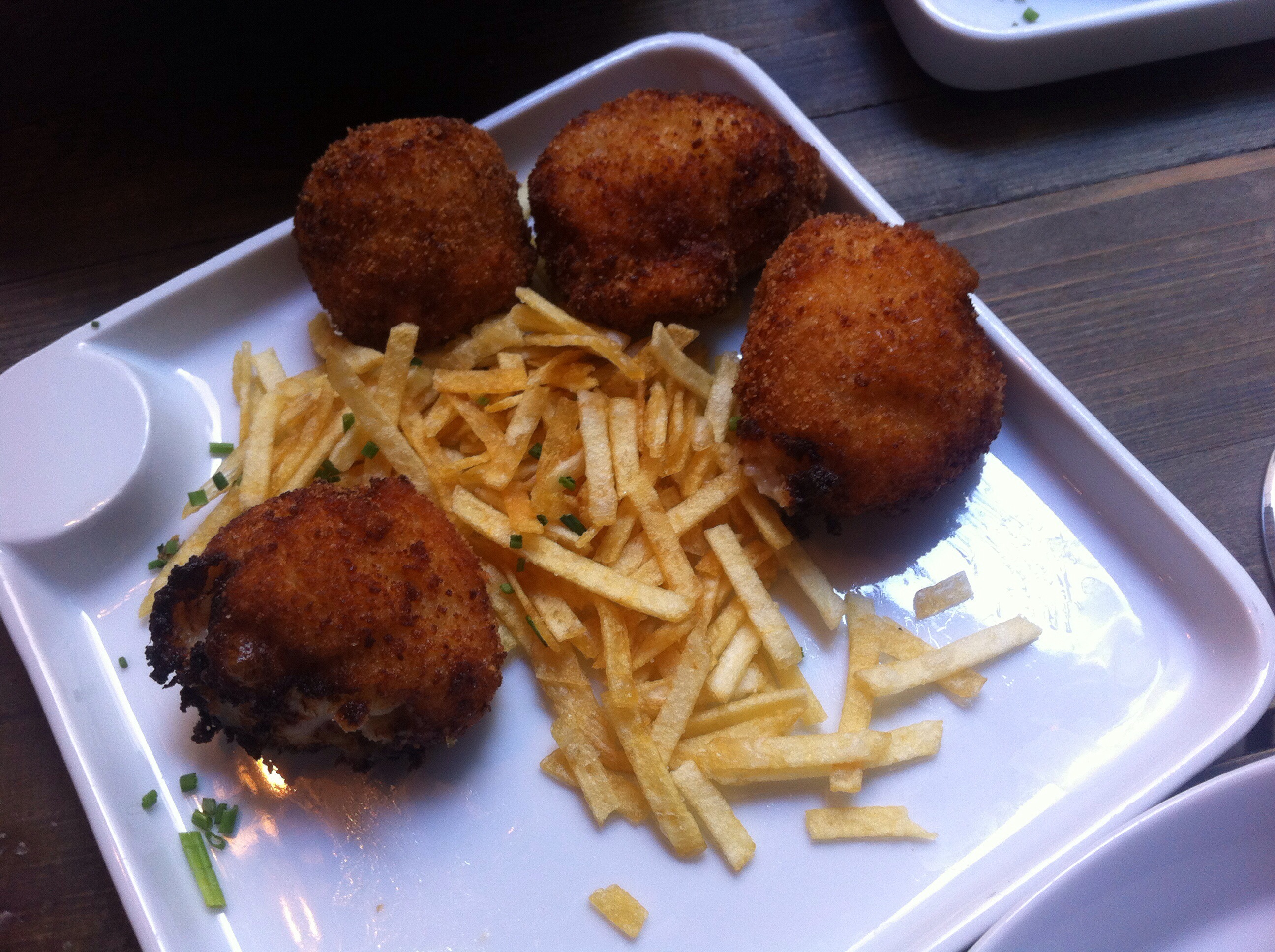 No puede faltar en un picoteo unas buenas croquetas de jamón. Sólo diré que casi ni las vi, fue ponerlas en la mesa y volaron…menos mal que mis amigas me quieren y me dejaron hacer la foto ;). Eran gorditas y redondas, crujientes y muy ricas…¡¡¡cómo nos gustan las croquetas!!!!