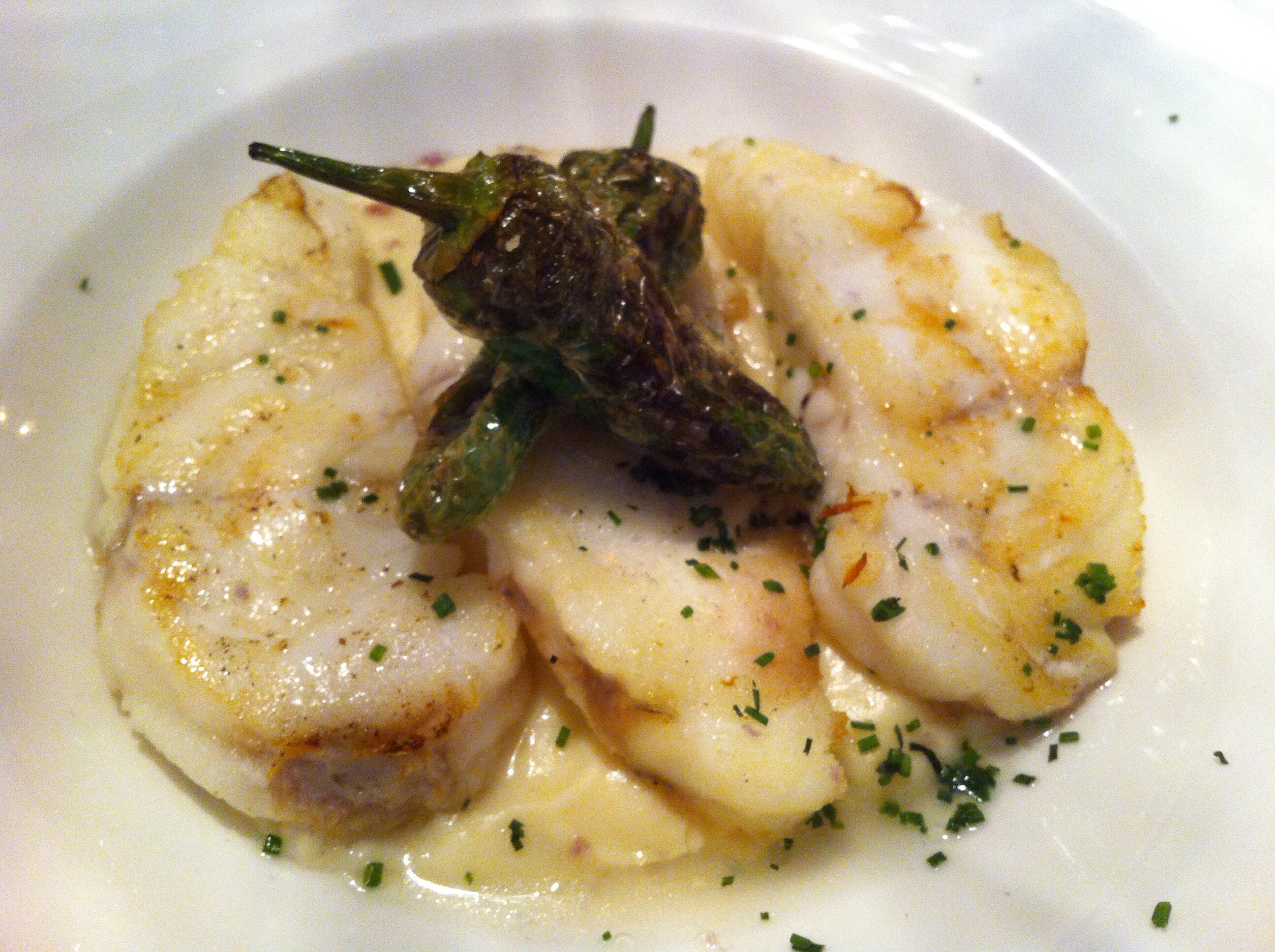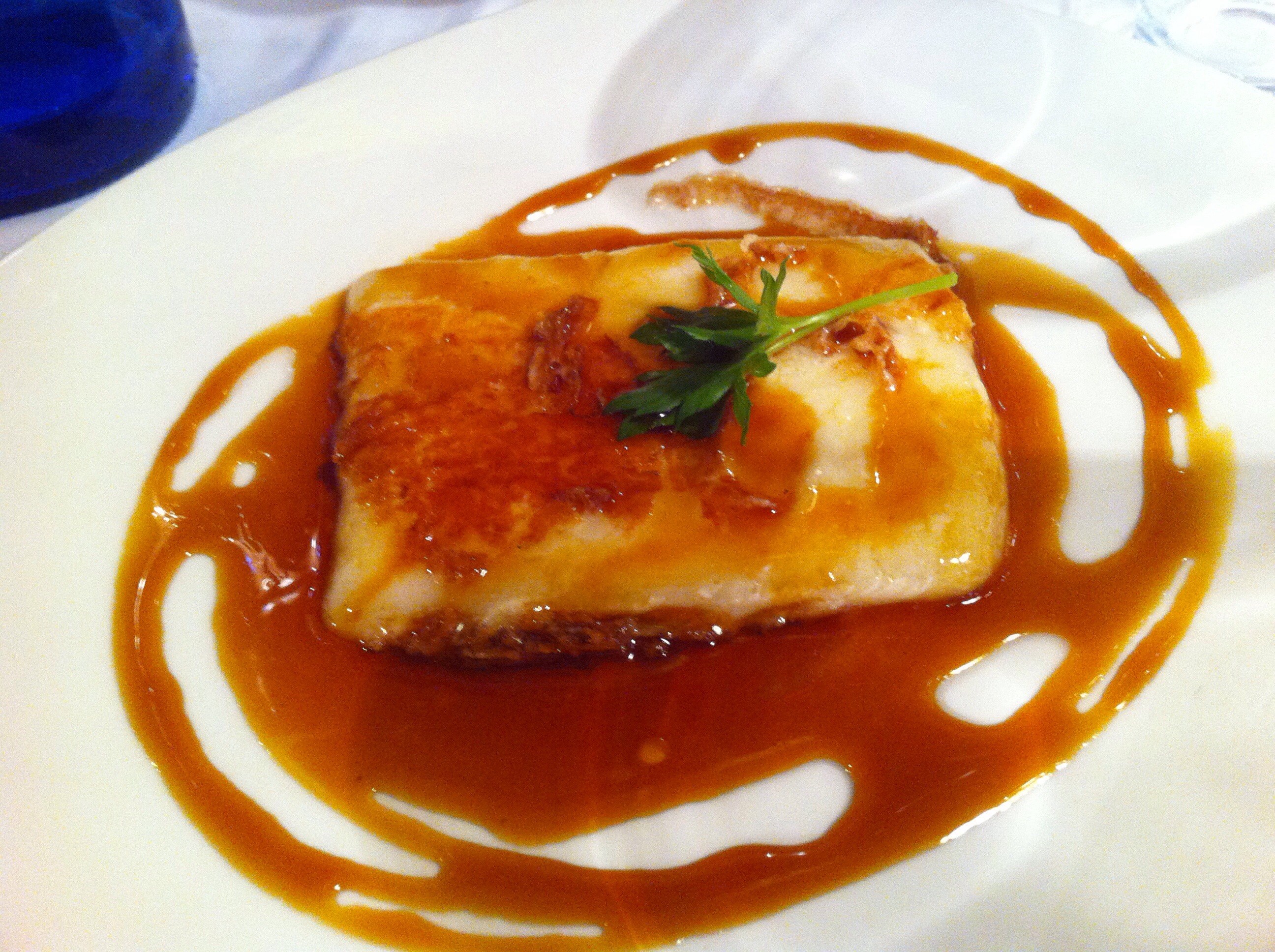 Como pescado del día tenían un rape con crema de coliflor y aceite de trufa, al que no pude resistirme ;). El puré mezclado con el aceite de trufa daban un sabor al pescado increíble…¡¡¡me encantó!!!