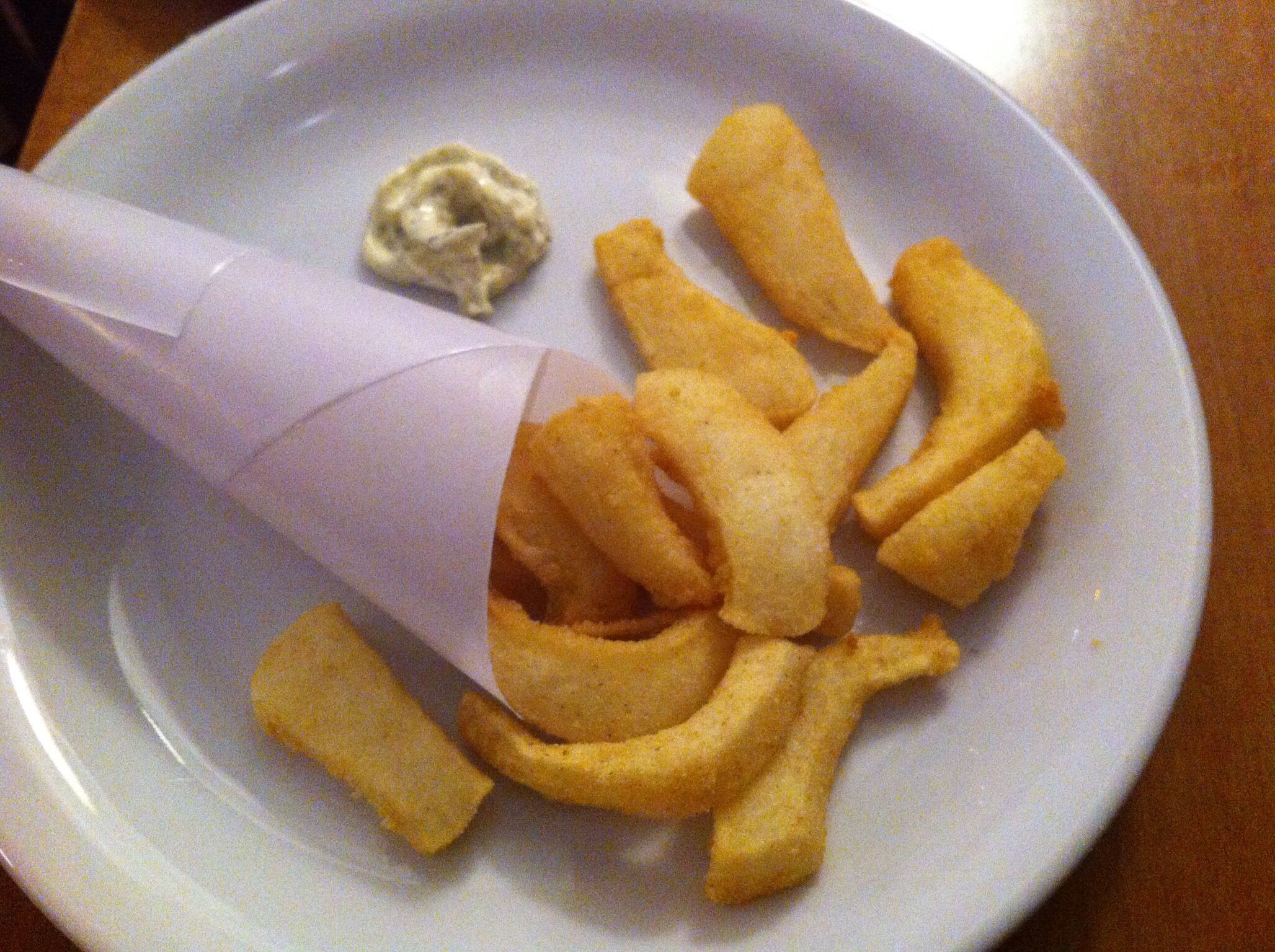 Mucho nos gusta el pescaito frito y en el Bar Lambuzo preparan unos cucuruchos de choco frito, con una fritura muy ligera y poco grasienta, que sienta de maravilla si lo acompañas de una manzanilla bien fresquita 😉