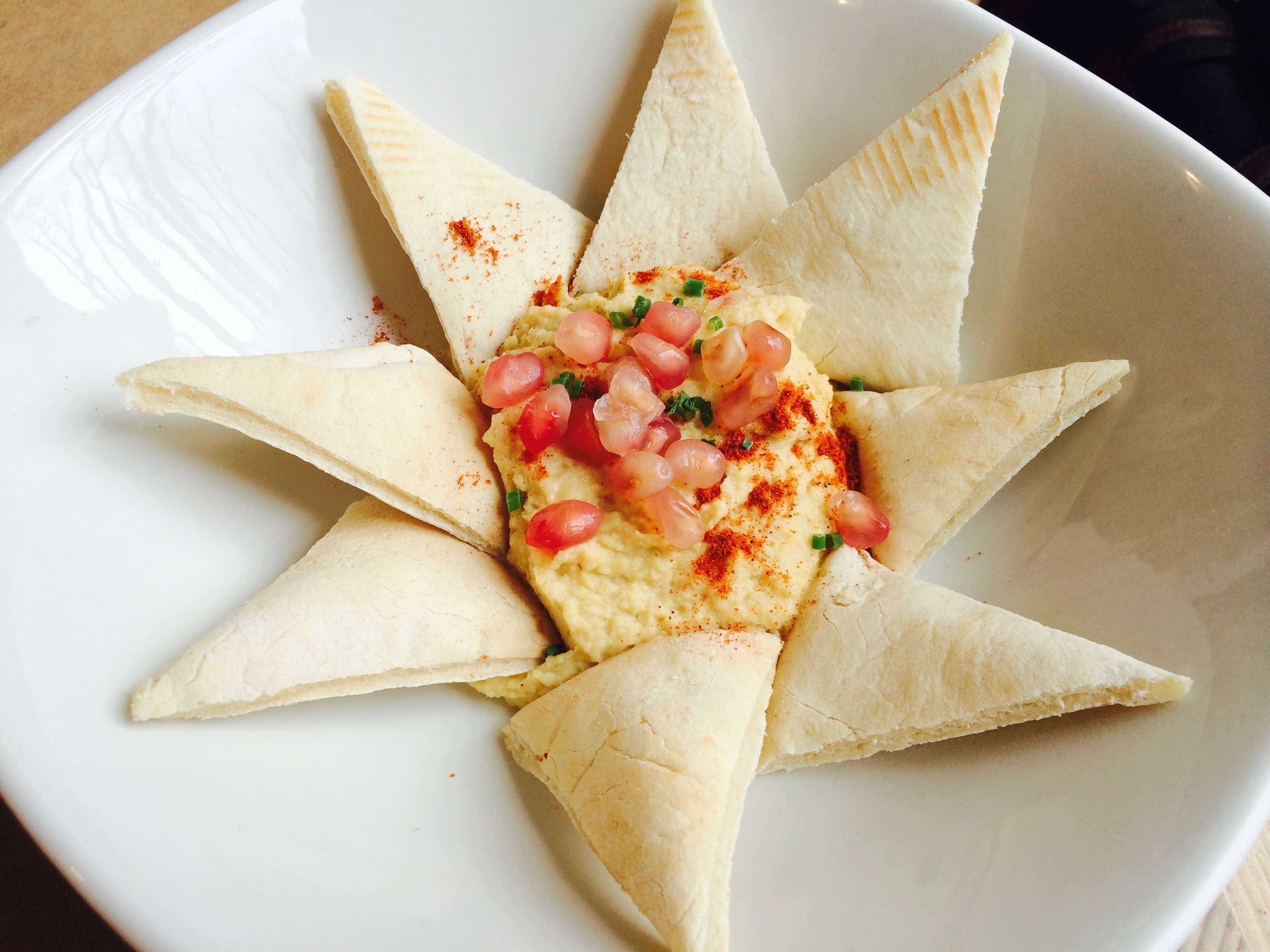 El hummus con granada nos resultó flojito, le faltaba un toque de pimentón y un buen chorrito de aceite de oliva virgen del que pica…pero como teníamos tanta hambre ni pensamos en estas pequeñas mejoras hasta que acabamos con él.