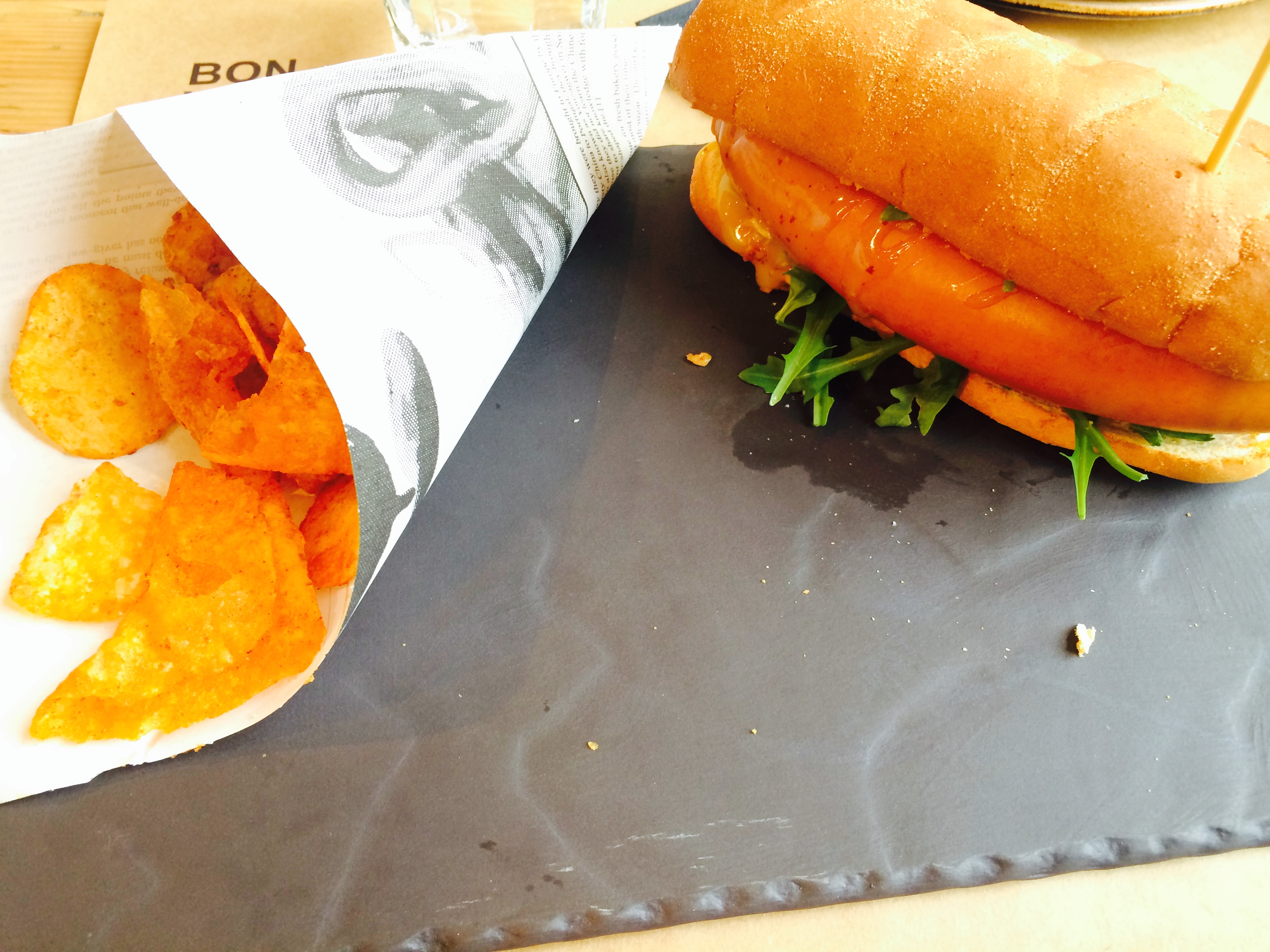 Con una carta donde encontraréis platos muy típicos para hacer un picoteo rico entre amigos (nachos con quesos, hummus, foie, burrata, tablas de quesos…) u otros no tan típicos como el perrito de Bratwurst con cebollita frita, las patatas revolconas o el pastel de pescado…no os esperéis una presentación de estrella michelín o una elaboración estilo los Roca, pero en Bon Vivant se come bien y sobre todo uno se siente muy a gusto 😉 .