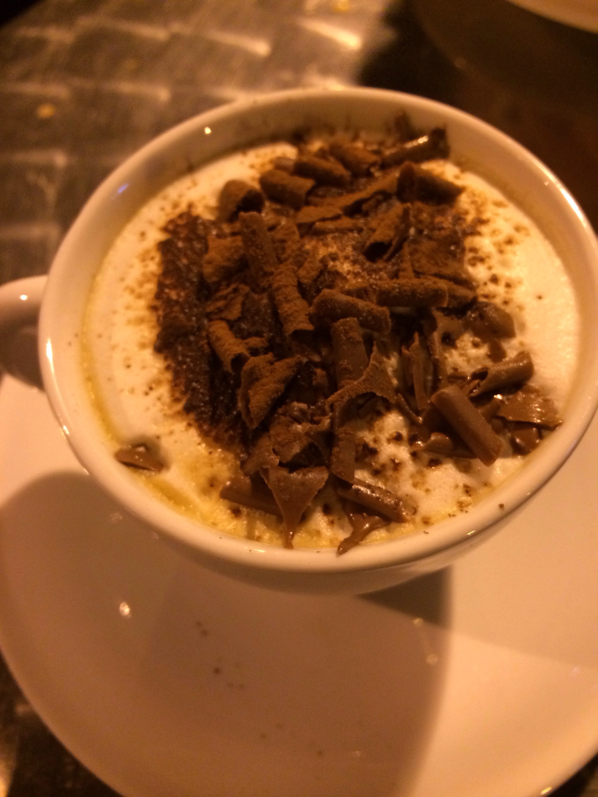 Totti se dejó aconsejar por Juan y se pidió un trozo de la tarta de cerveza negra, exactamente era de Mahou cosa poco habitual en este tipo de tartas porque se suele usar la cerveza Guinness que es la más famosa…eso hizo que le picase la curiosidad a mi hermana y se decantase por ese minúsculo trozo de tarta. Con un sabor inesperado en el primer bocado, a medida que vas tomándola te acostumbras y al final incluso le acabas cogiendo cariño y te gusta 😉 .