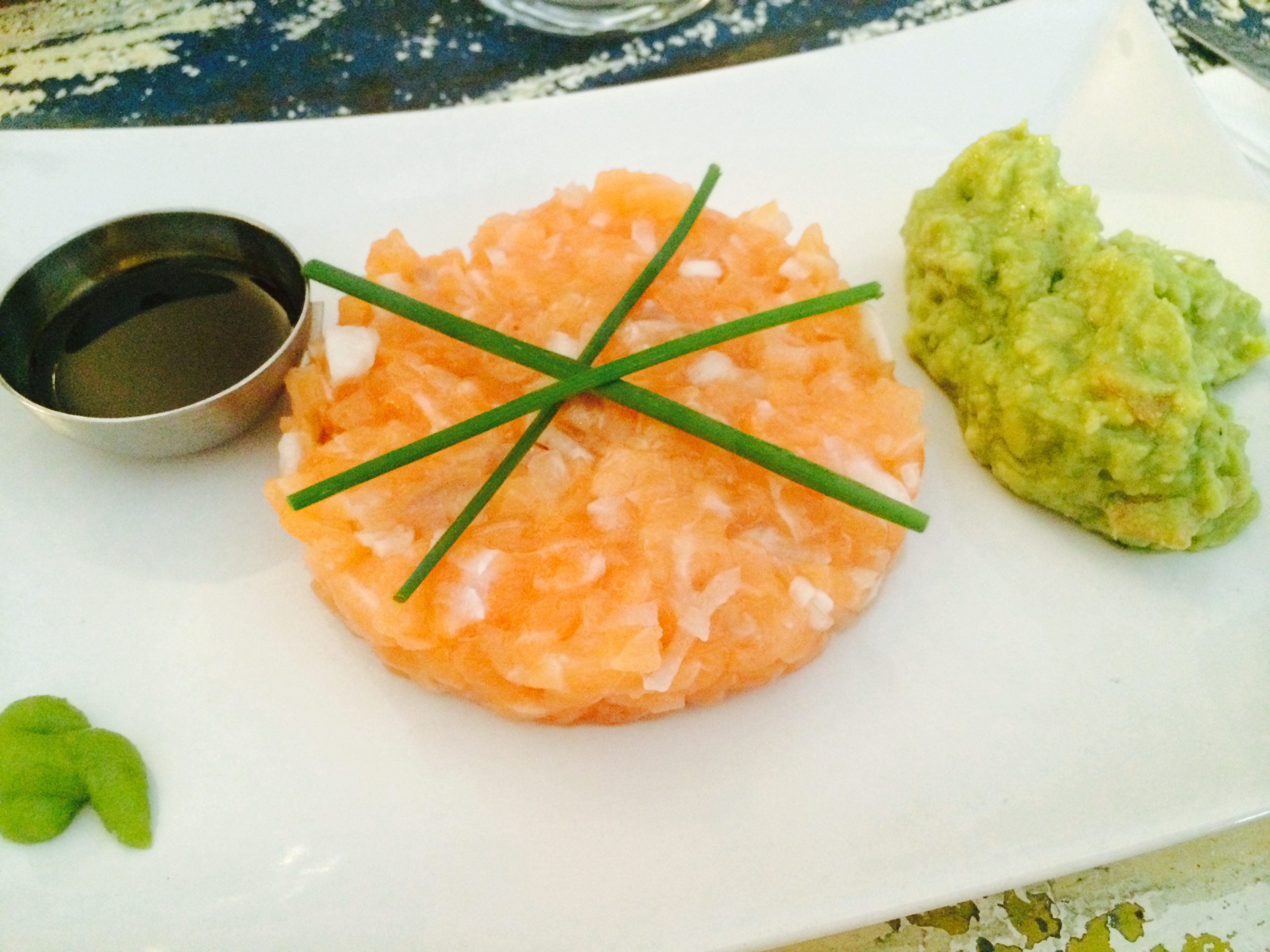 Influenciados por el post de Con El Morro Fino probamos el tartar de salmón con guacamole y wasabi, que es un plato ideal para los amantes de la comida cruda, ligera y con mucho sabor marino. A nosotros nos encantó la mezcla del salmón con el guacamole, que siendo dos alimentos que pueden resultar muy grasos en este plato se combinan con una pareja de ancianos que lleva toda la vida casada y con una mirada se dicen todo.