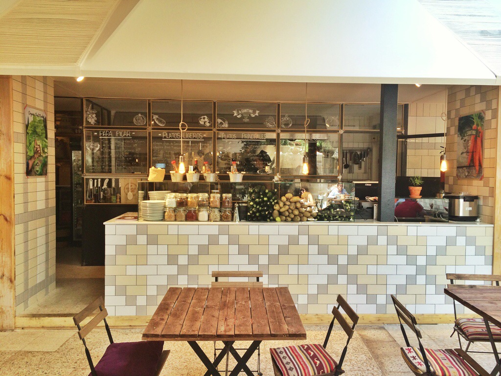 Mi recomendación: el sitio es una pasada, aunque la entrada no te invita a pasar porque no imaginas lo que hay dentro. A la cocina aún le falta un poco rodaje, pero no me cabe la menor duda que en otoño será uno de los sitios de los que más se hable porque es un concepto chulísimo. Os recomiendo ir a visitarlo, animaos a comprar algo de alguno de sus puestos y luego probar la cocina de la cantina. Comer sale por 25 euros/persona tomando dos platos cada uno y sin vino ni postre.