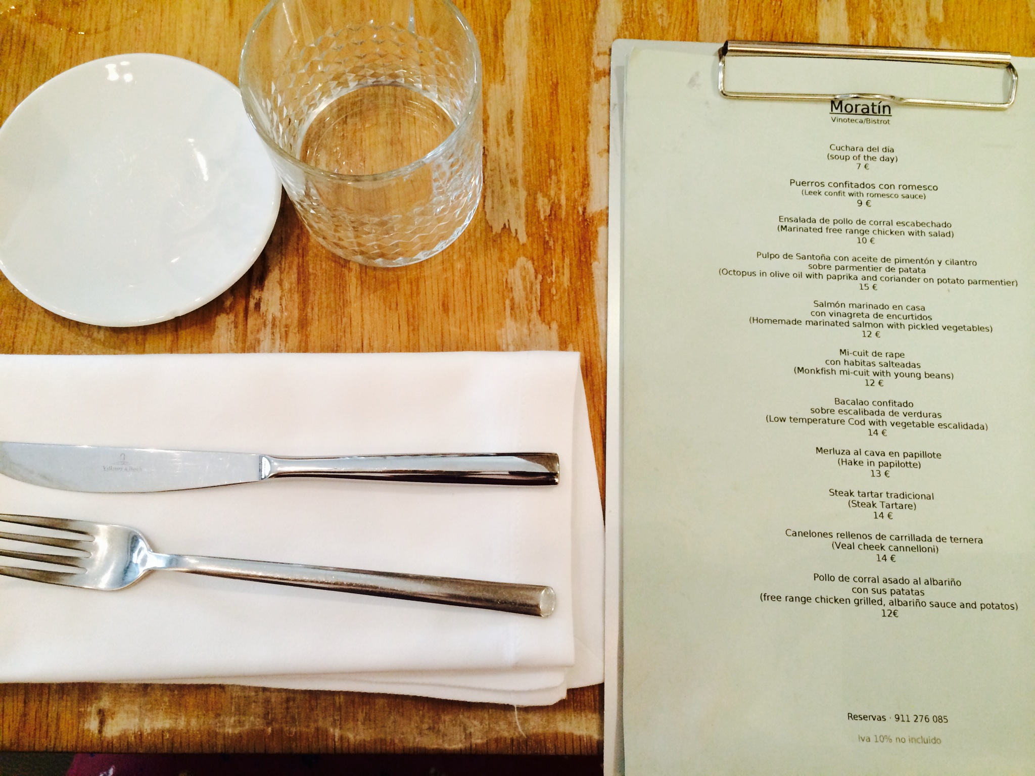Mi recomendación: si sois partidarios de los sitios puestos con dedicación y cariño, donde lo importante es que el cliente esté a gusto, creo que Vinoteca Moratín os va a encantar. Marcos os transmitirá su pasión por todos los platos que prepara y si os dejáis que os aconseje cenaréis y beberéis de maravilla. Es obligatorio reservar. Cenar sale por 25-30 euros/persona con vino, una relación calidad-precio excepcional.