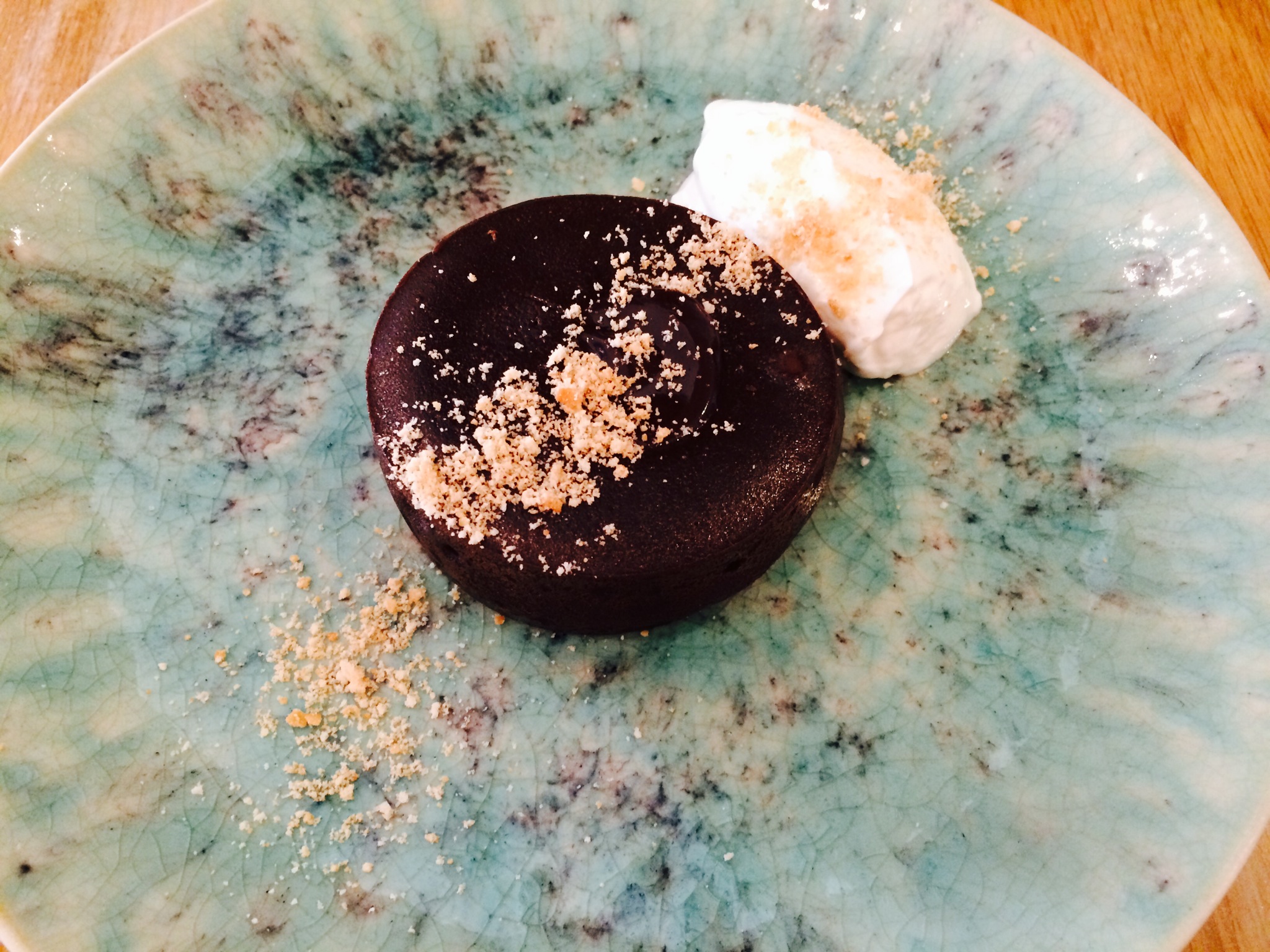 Y terminamos la comida con un coulant de chocolate y yuzu con helado de yogur griego. Nos daba miedo la mezcla, pero como fue el postre que nos recomendaron, nos dejamos llevar y…¡¡¡menudo acierto!!! No duró en la mesa ni cinco minutos 🙂 .