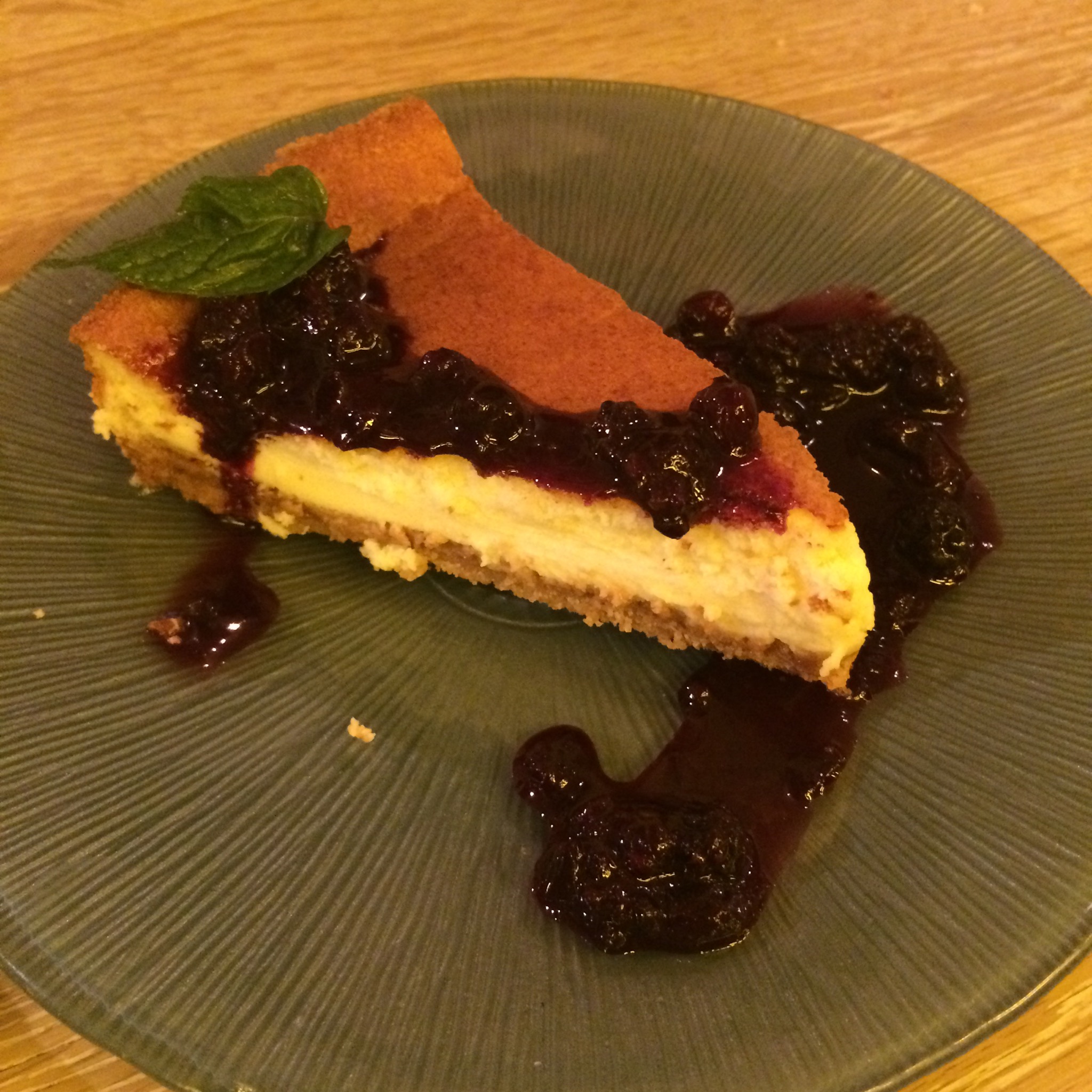 De postre probamos la tarta de queso con mermelada de arándanos, sin duda el postre que más me gustó…y eso que yo soy más fan de las tartas de queso sin hornear, pero ésta estaba perfecta. Y la mermelada de arándanos, le aportaba el toque dulce que le faltaba y que siempre se agradece al final de la comida.