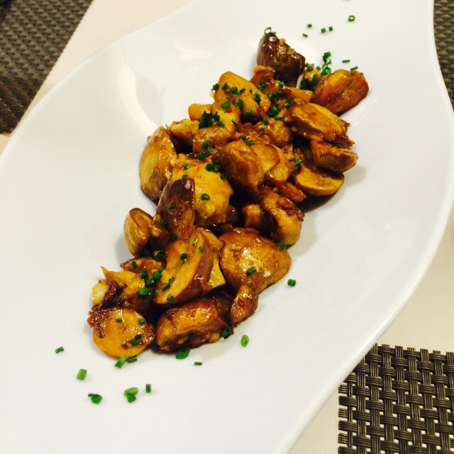 De primero queríamos pedir todos los platos de setas, porque es un producto tan rico y que dura tan poco tiempo, que hay que aprovechar cuando lo tienen en la carta 🙂 . Finalmente, fuimos comedidos y pedimos un salteado de amanita cesarea. Un plato de sencilla elaboración gracias a la excelencia del producto, al que con un chorrito de aceite de oliva y el cebollino le conviertes en un rey…no necesitaba nada más.