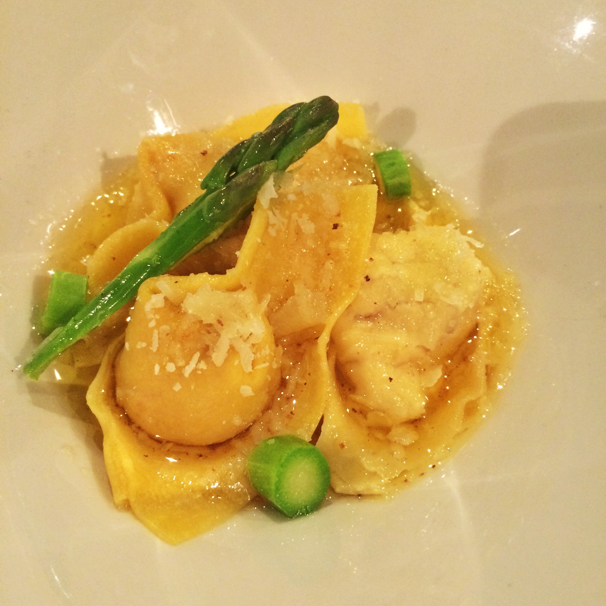 El plato que más nos impresionó del menú fueron los raviolis de speck y trigueros, me hubiera tomado un plato más sin problemas. Espárragos al dente, raviolis caseros con un relleno que queda en la memoria de los amantes de la pasta y queso parmesano rallado envolviendo todos los sabores.