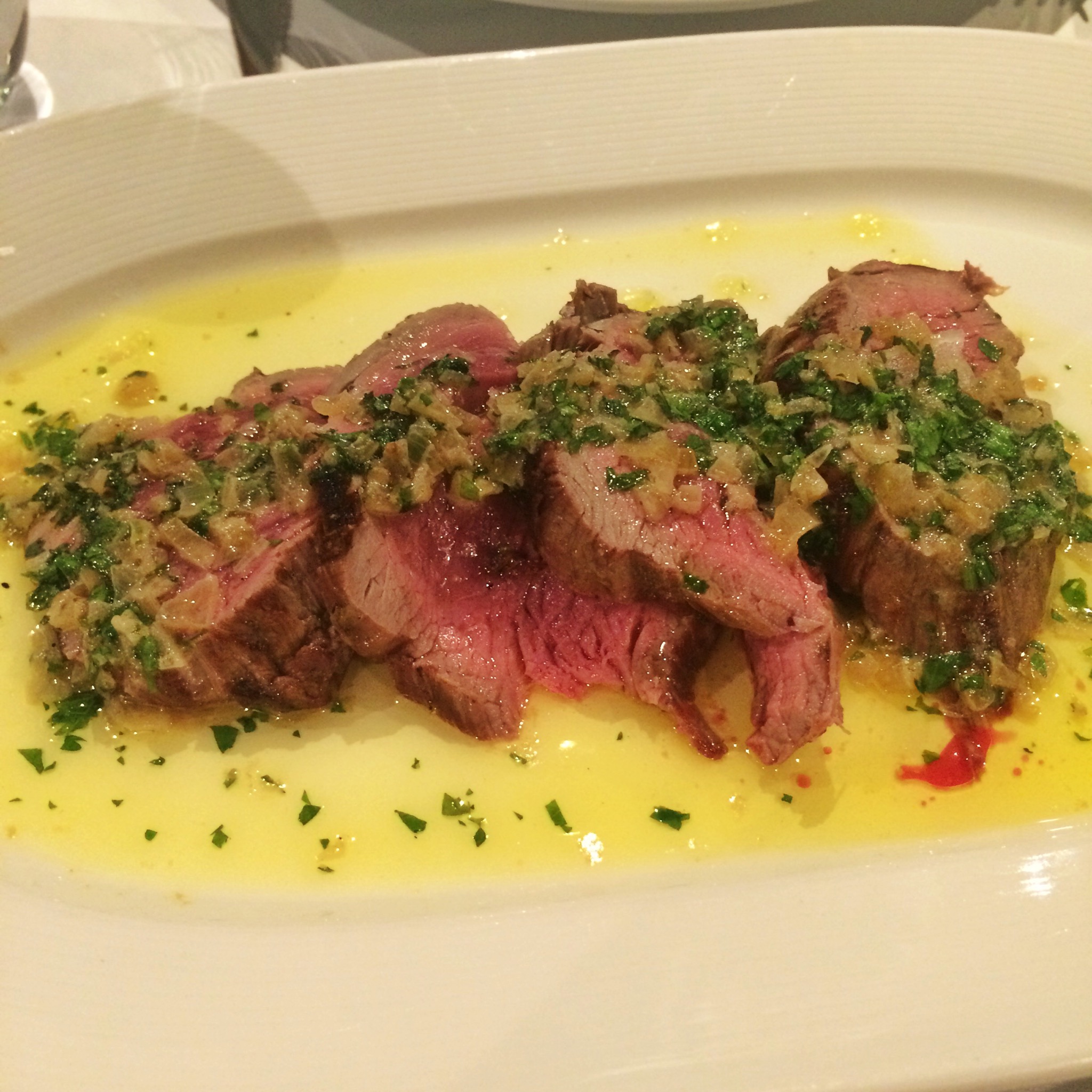 Un clásico instantáneo de la casa, el solomillo a la broche, no podía faltar dentro del menú que probamos. Carne poco hecha, se deshacía en la boca como si fuera mantequilla. Una muy buena opción para carnívoros. Eché de menos unos pimientos asados de guarnición, aunque he de admitir que a las patatas fritas no se les podían hacer ascos porque estaban muy bien fritas.