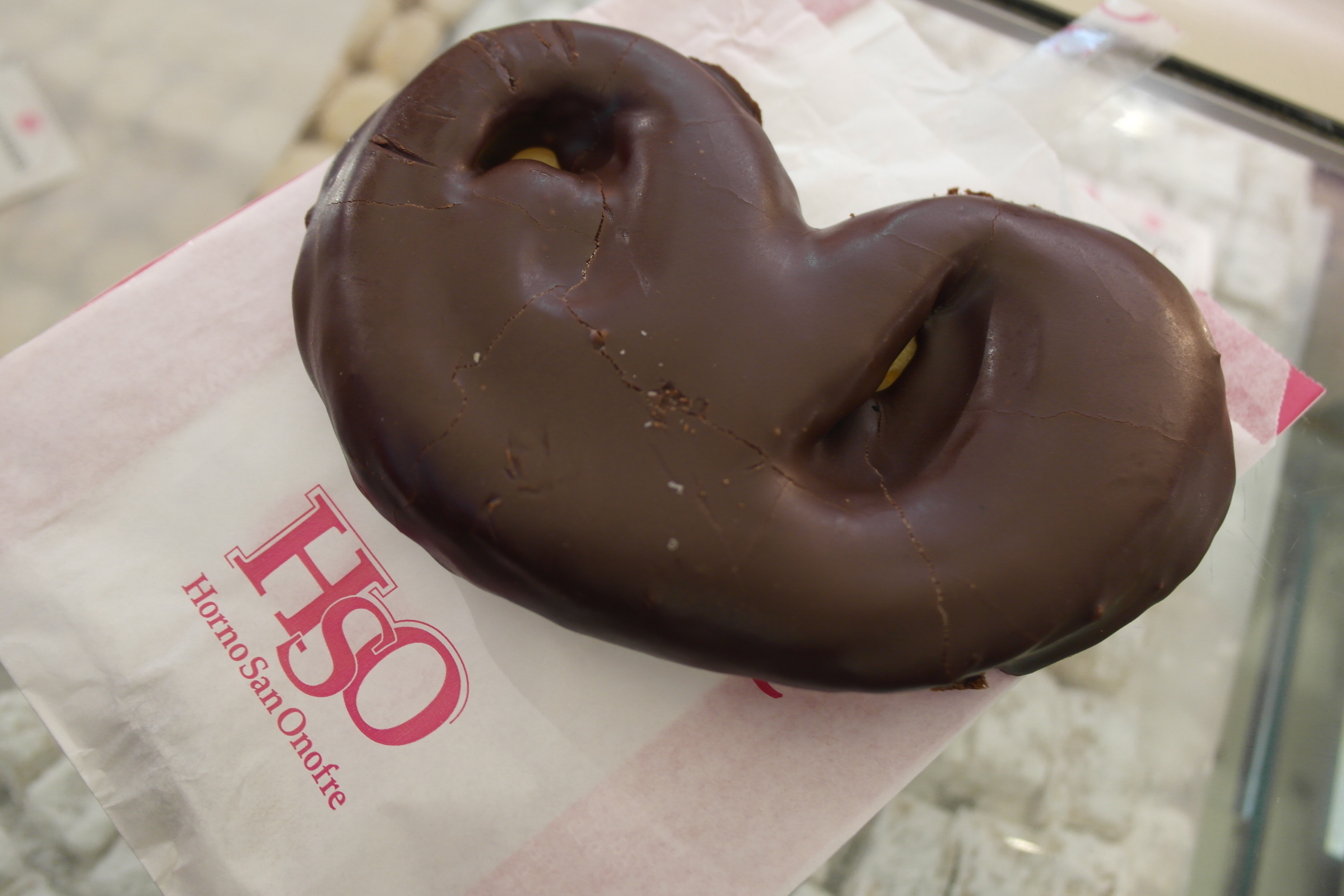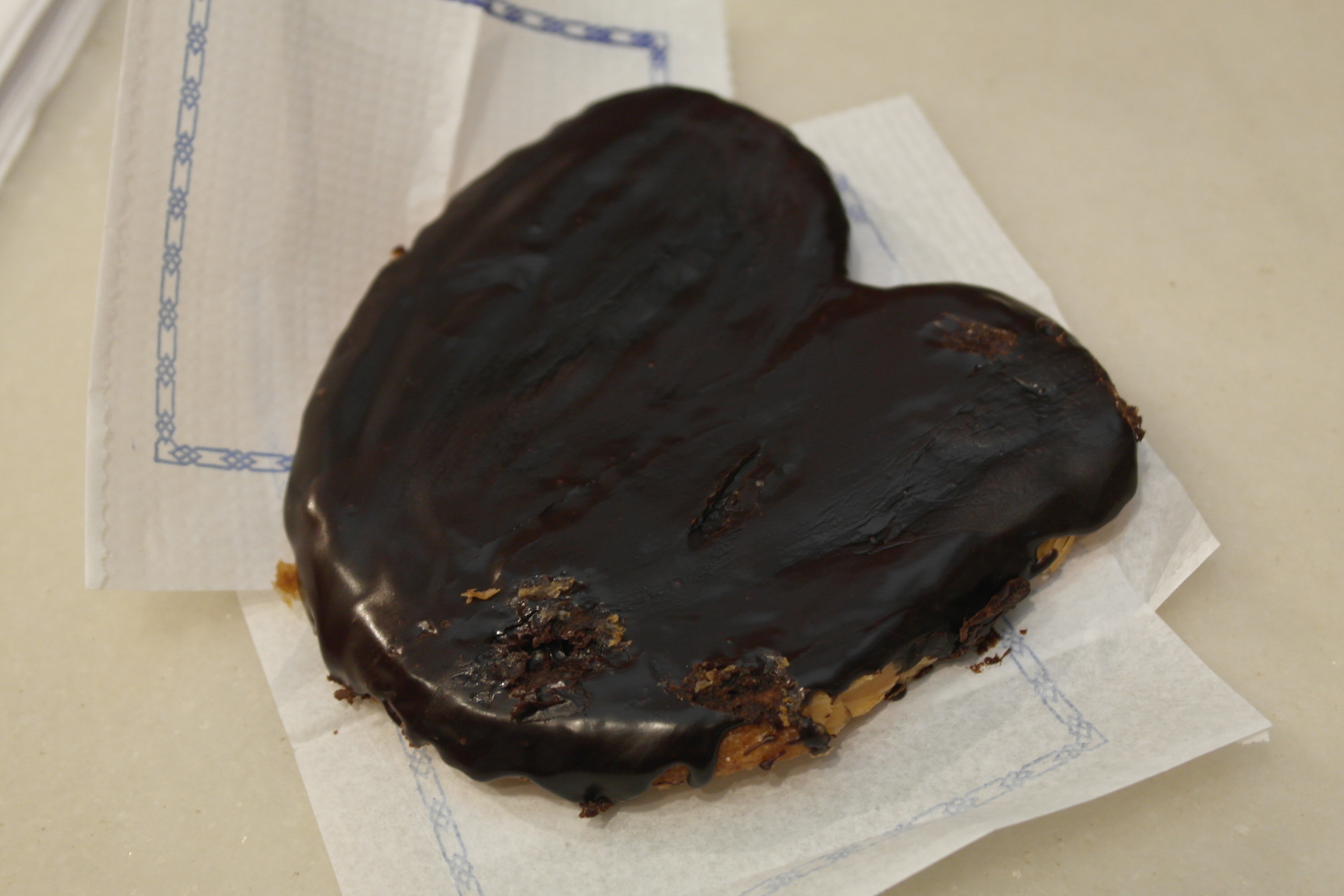 La palmera de chocolate de la Mallorquina es una de mis favoritas, no sé si es por la generosa capa de chocolate que lleva o por la suave capa de hojaldre con el que la preparan, pero lo cierto es que para mi gusto es de las más ricas de Madrid. Además, tiene un plus, si la pides para llevar te dan una servilleta y la envuelven con papel y plástico para que el chocolate no se pegue.