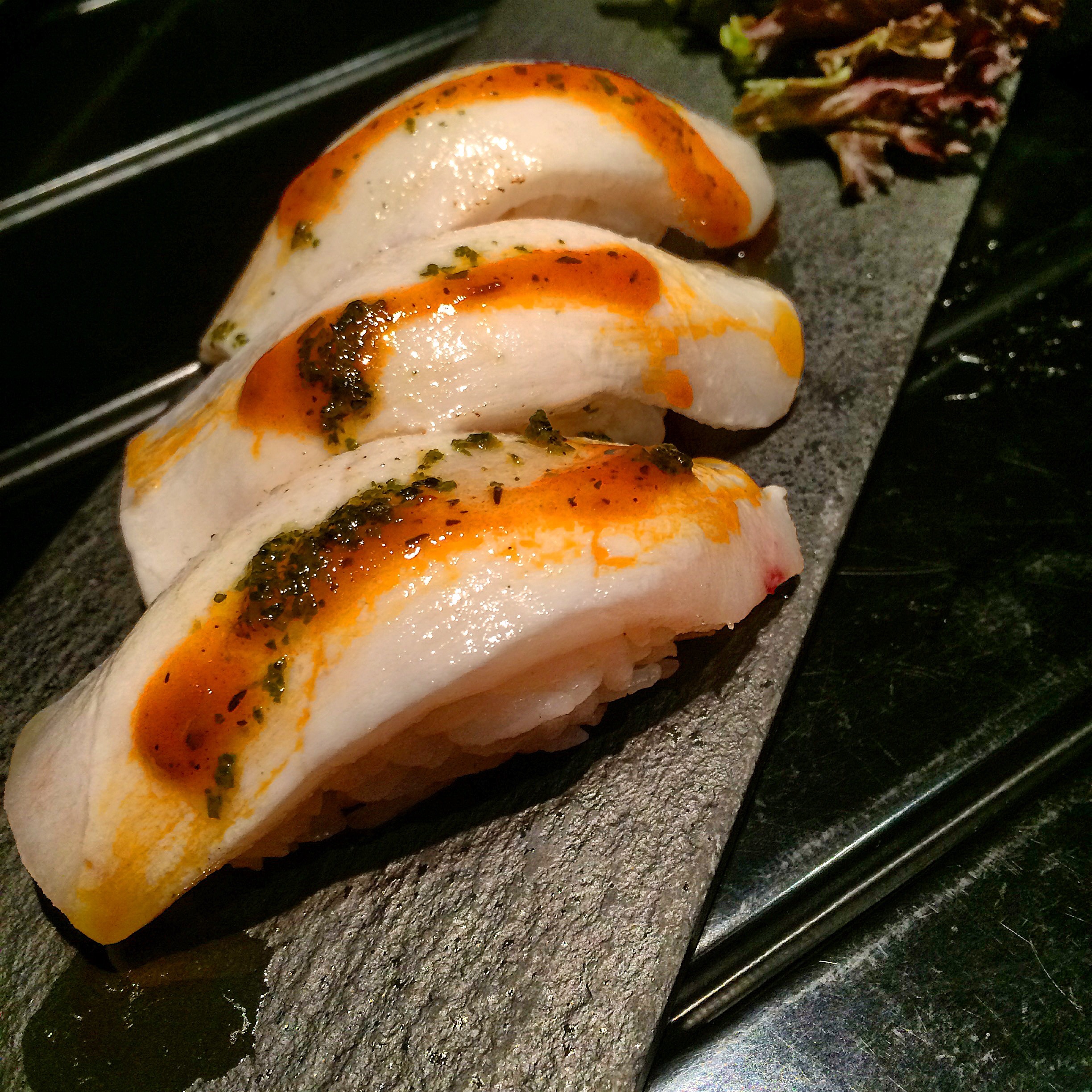 Otro de los nigiris que no podía faltar era el de pez mantequilla con salsa de ponzu y cebollino. El sabor cítrico de la salsa potenciaba el rico sabor del pez mantequilla, convirtiéndolo en una opción muy recomendable si venís a cenar a Sky Sushi :).