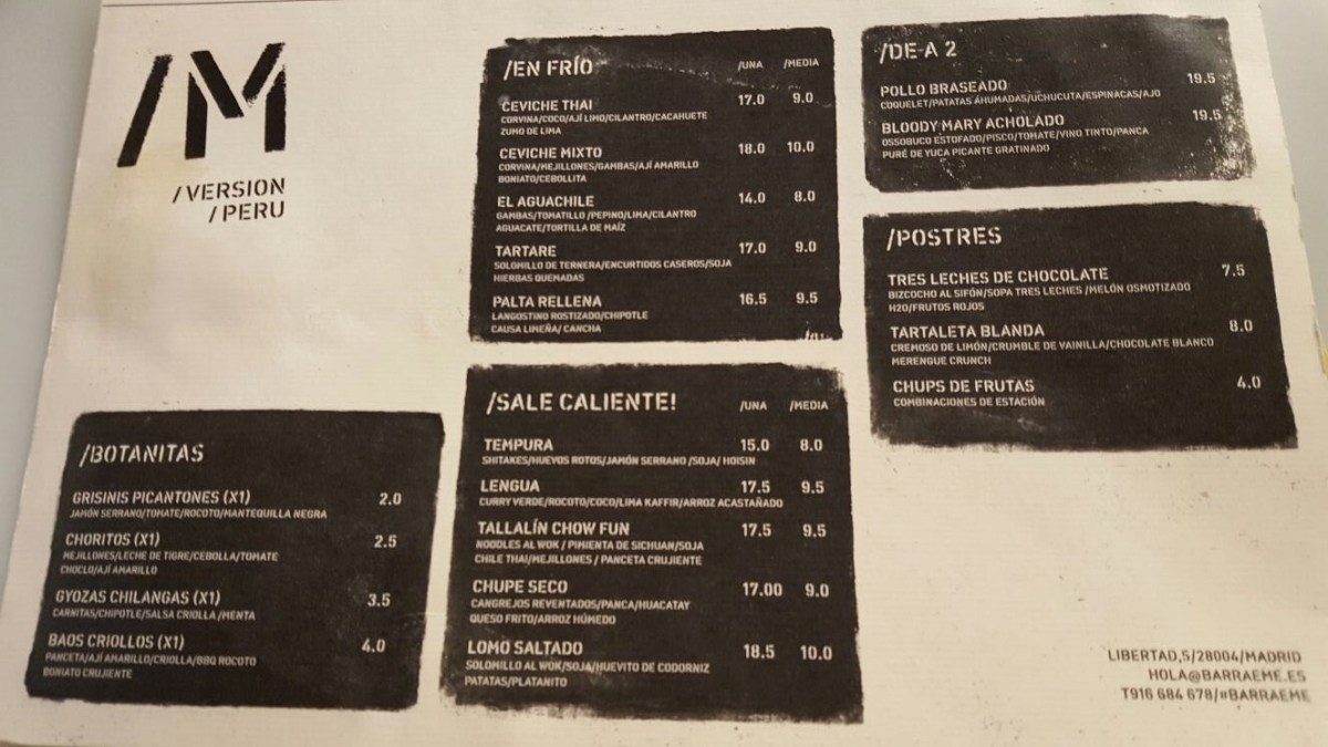 img_1069 Publicado 11 de octubre de 2016 en 1328 × 747 en Barra/M ← Anterior Siguiente → Carta con influencias mejicanas y japonesas (cocina nikkei)